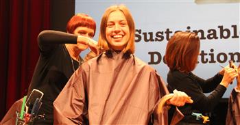 The 2017 event was organised by two final-year students, Charlotte Doughty and Xanthe Muston, who took on the project from founder, Miranda Ilchef, a 2016 graduate. Miranda, who was inspired to create the 2015 event by her aunt’s hair loss through chemotherapy, was there this week to cheer donors onto the stage.