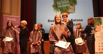 Expressions on the faces of six girls perched on stools on stage were priceless as they had their 15-20cm locks placed in their hands by Sydney TAFE Hairdressing and Barbering School teachers. Paul Frasca, co-founder of Sustainable Salons Australia, kept up the momentum as MC for the event and encouraged the next girls to take the stage.